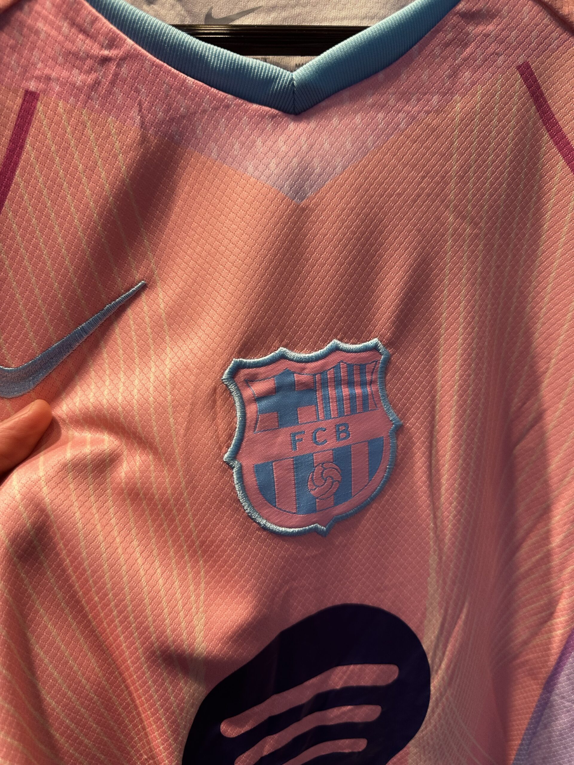 Barcelone rose bombon 2026 tissu jersy logo+sponsor=🧵🪡